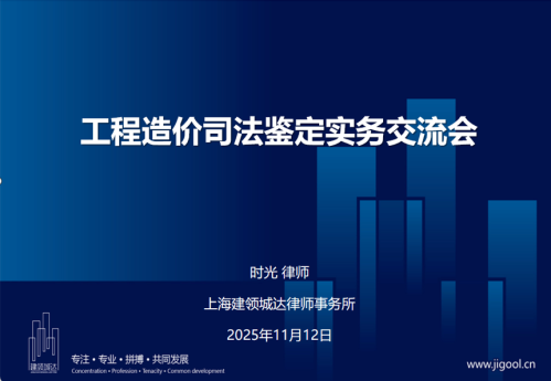 2025年11月12日下午,上海建领城达律师事务所合伙人时光律师受上海建工一建集团邀请,为其开展了主题为《工程造价司法鉴定实务》的交流培训。上海建工一建集团及下属各子、分公司法务人员以线上、线下相结合的方式参加了本次交流讲座。