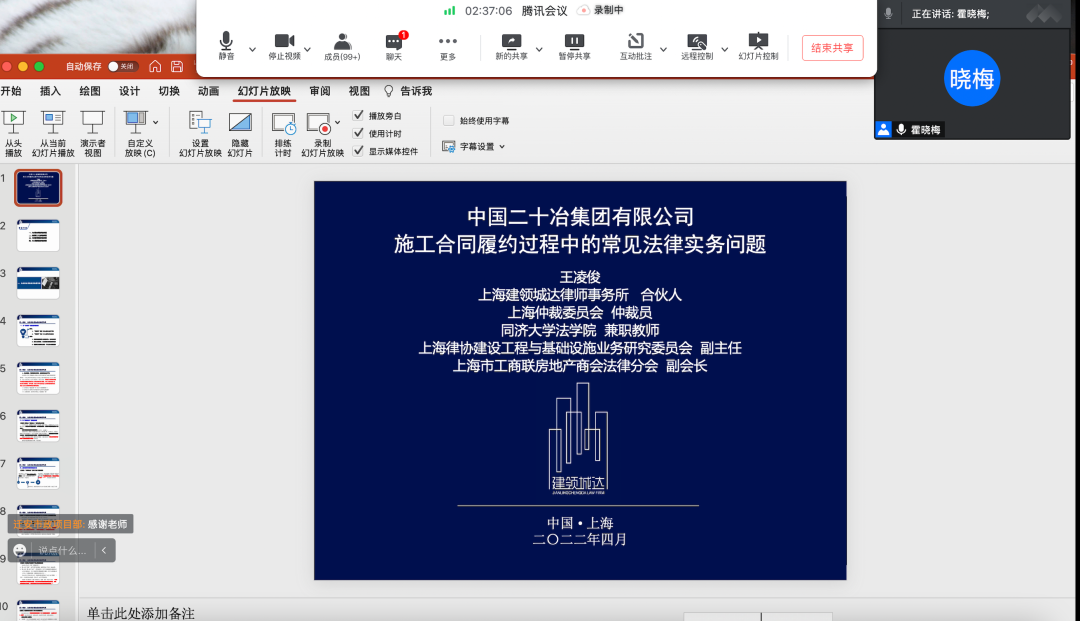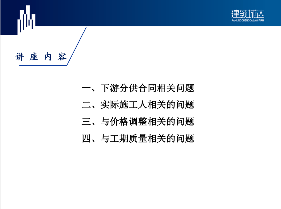 本次培训中,王凌俊律师从下游分供合同、实际施工人、合同价格调整、工期与质量四个方面的问题入手,通过真实案例解析将实务问题、常见误区、司法实践相结合,归纳了工程项目出现风险、争议、亏损的各类履约原因并提供了解决应对的思路,获得参会人员的好评与认可。