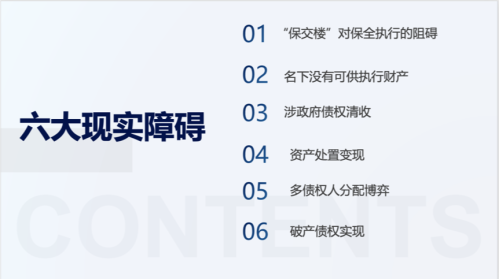 李越律师立足当前房地产行业发展现状,结合多年实务经验与团队亲办案例,聚焦房地产执行领域面临的六大现实障碍——“保交楼”对保全执行的阻碍、被执行人“名下无可供执行的财产”、涉政府债权清收、资产处置变现、多债权人分配博弈以及破产债权实现,深入剖析了障碍成因,并基于成功实践经验提出体系化破局路径。